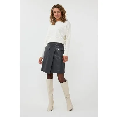 EsQualo Skirt Overlap Vegan Leather Grey Prijzen