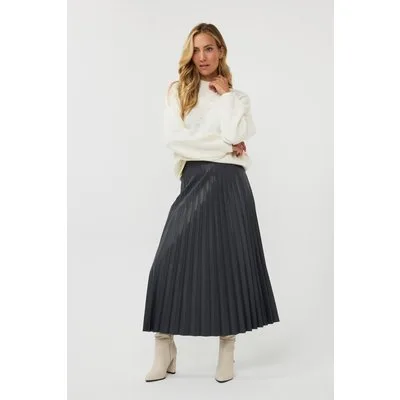 EsQualo Skirt Plisse Vegan Leather Grey Prijzen