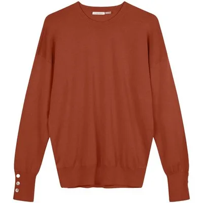 EsQualo Sweater Basic Button Slve Cuff Copper Brown
