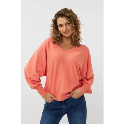 EsQualo Sweater Batwing Basic Knit Amber Glow