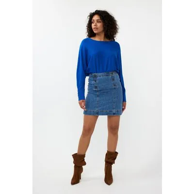 EsQualo Sweater Batwing Buttoned Cuff Basic Knit Brilliant Blue Prijzen