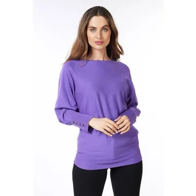 EsQualo Sweater Batwing Buttoned Cuff Deep Lavender