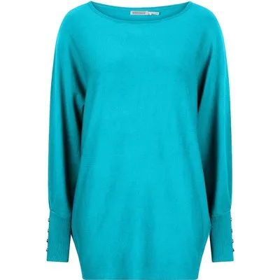 EsQualo Sweater Batwing Buttoned Cuff Peacock Blue