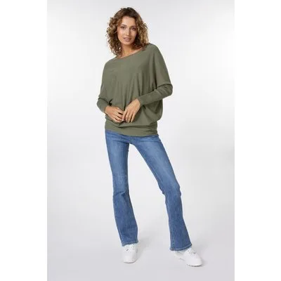 EsQualo Sweater Batwing Leaf Green Prijzen