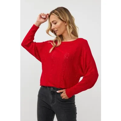 EsQualo Sweater Batwing Lurex Red Prijzen