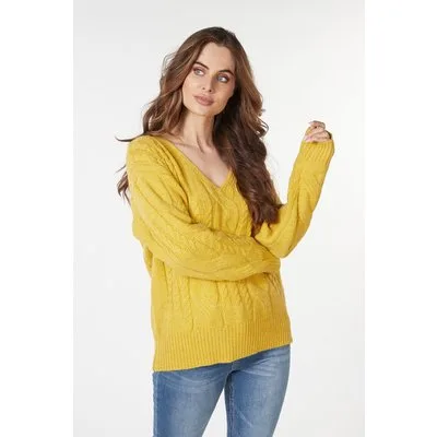 EsQualo Sweater Cables V-neck Warm Olive