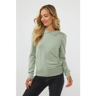 EsQualo Sweater Collar Basic Knit Jade Prijzen