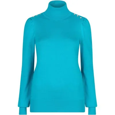 EsQualo Sweater Fancy Detail Shldr Basic Knit Peacock Blue