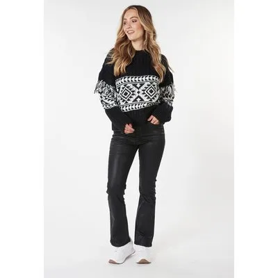 EsQualo Sweater Jacquard Fringes Black / White Prijzen