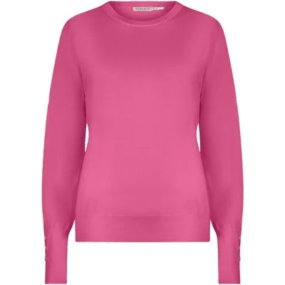 EsQualo Sweater R-neck Buttoned Sleeve Cuff Pink