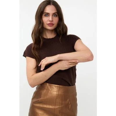 EsQualo Sweater S/slve Elastic Waist Chocolate