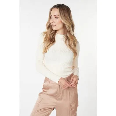 EsQualo Sweater Top Fancy Rib Basic Knit Ivory Prijzen