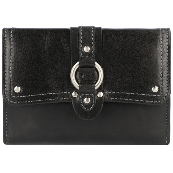 Design: Drukknopsluiting, Kaartvakjes, Schijnvak; Materiaal: Leer; Materiaal: Glad leer; Extra's: Studs, Contrasterende naden, Gladde stof