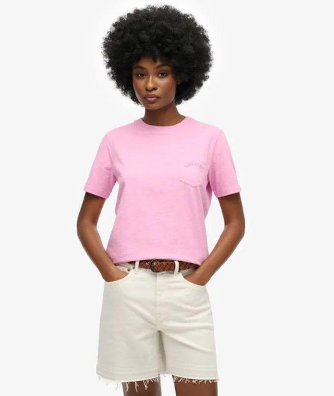 Essential Garment-dye T-shirt met Logo en Borstzak Pink