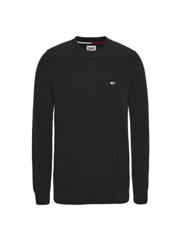 Tommy Jeans Essentiel herentrui van zwart katoen. Authentiek Tommy Jeans kledingstuk - streetwear/sportkleding design van Tommy Jeans - Tommy Jeans voor heren, modieus en perfect voor dagelijks gebruik - de zwarte Tommy Jeans trui is ideaal te combineren met de rest van je garderobe - comfortabel katoen - klassiek - essential