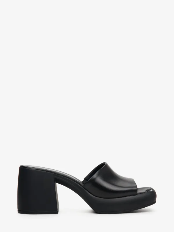 Type hak: Blokhak; Materiaal: Leer; Motief: Effen; Plateau: Met plateau; Materiaal: Glad leer; Schoenneus: Open toe; Hakhoogte: Hoge hak (7-10 cm)
