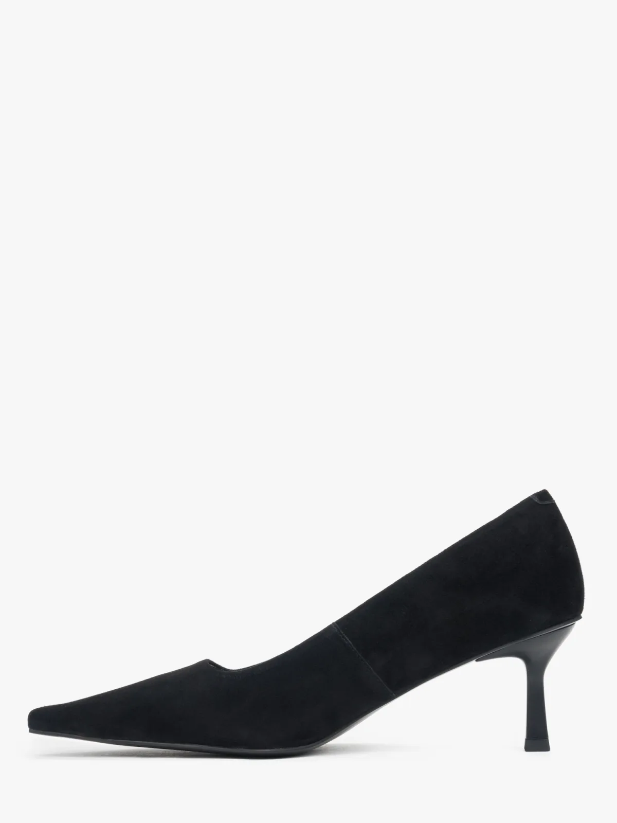 Type hak: Trechterhak; Materiaal: Fluweel/Nicky Velours; Motief: Effen; Materiaal: Glad leer; Schoenneus: Spitse neus; Hakhoogte: Middelhoge hak (3-7 cm)