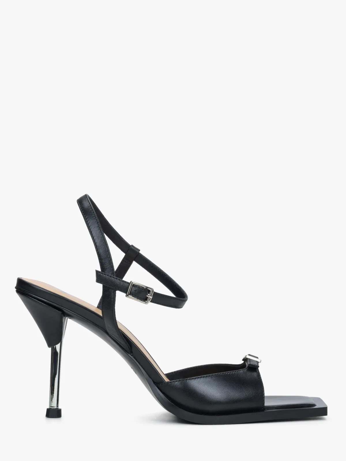Type hak: Stiletto; Materiaal: Leer; Motief: Effen; Materiaal: Glad leer; Schoenneus: Open toe; Hakhoogte: Hoge hak (7-10 cm)