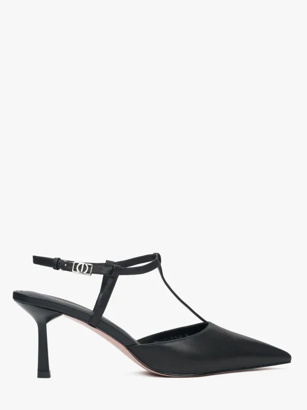 Type hak: Stiletto; Materiaal: Leer; Motief: Effen; Materiaal: Glad leer; Schoenneus: Spitse neus; Hakhoogte: Hoge hak (7-10 cm)