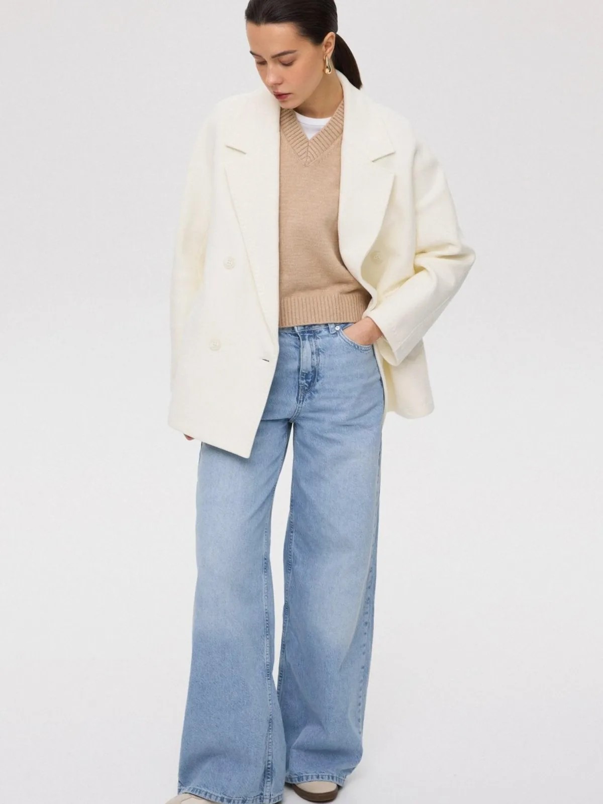 Type mantel: Klassieke mantel; Voering: Licht gevoerd; Materiaal: Wol; Motief: Effen; Pasvorm: Losse pasvorm; Lengte: Korte pasvorm