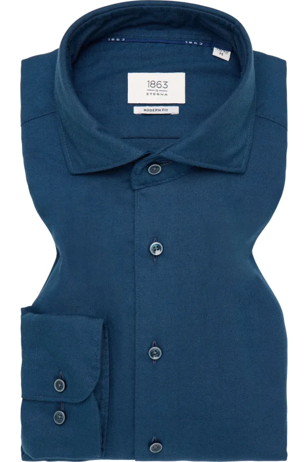 ETERNA 1863 Flanellen Overhemd blauw, Effen Prijzen