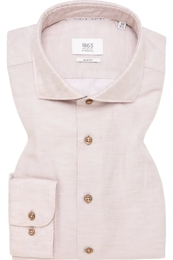 ETERNA 1863 Linnen Overhemd beige-bruin, Effen Prijzen
