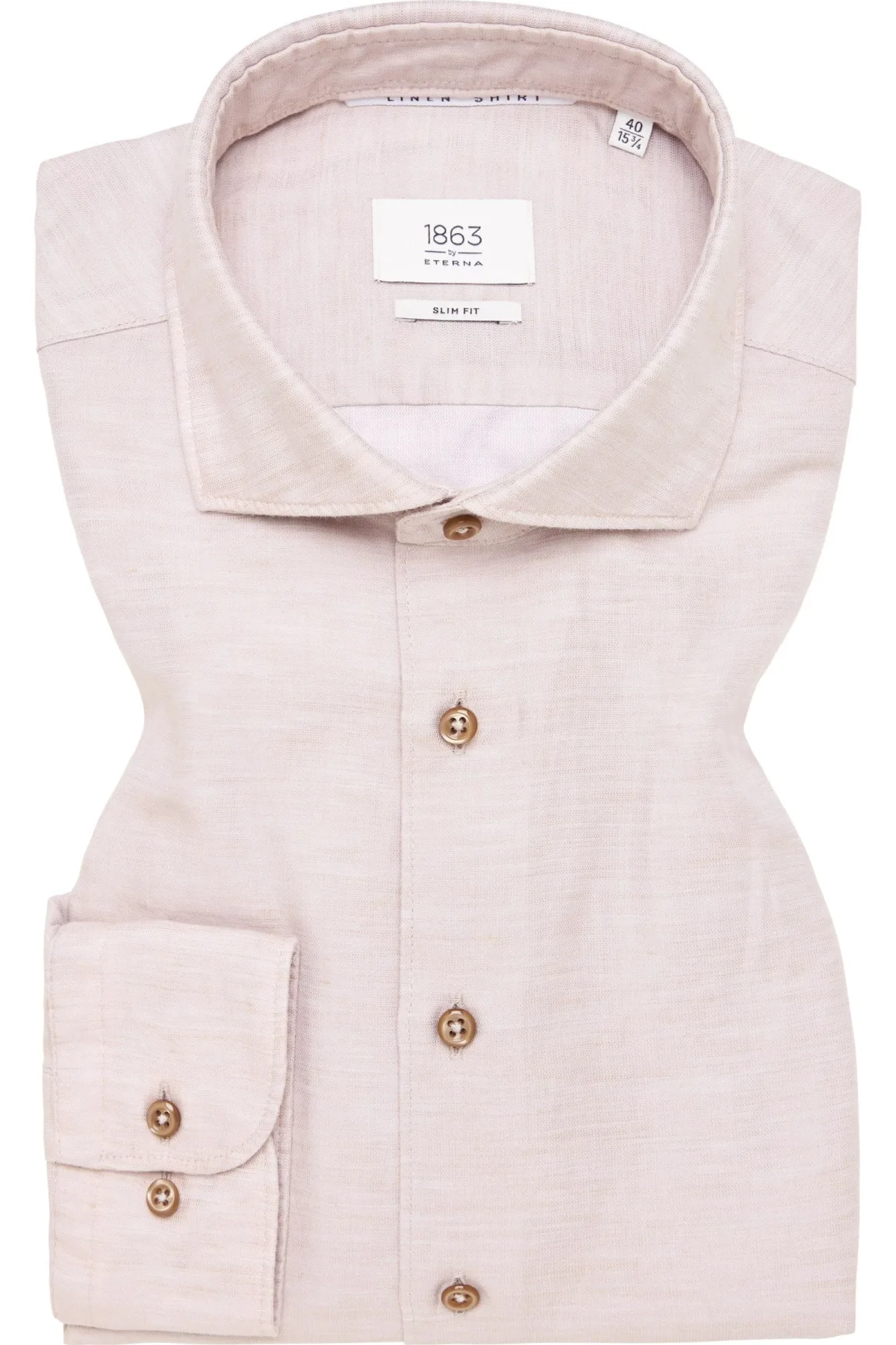 ETERNA 1863 Linnen Overhemd beige-bruin, Effen