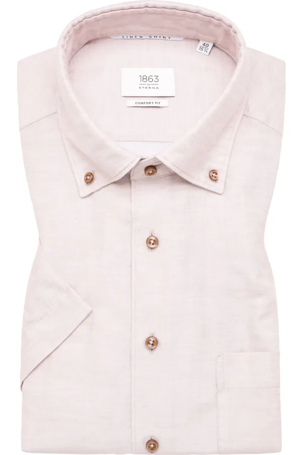 ETERNA 1863 Linnen Overhemd beige, Effen Prijzen