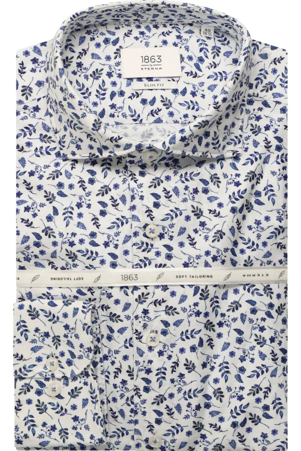 ETERNA 1863 Linnen Overhemd blauw, Bedrukt Prijzen