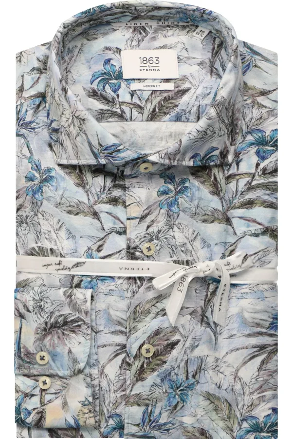 ETERNA 1863 Linnen Overhemd blauw, Bedrukt Prijzen