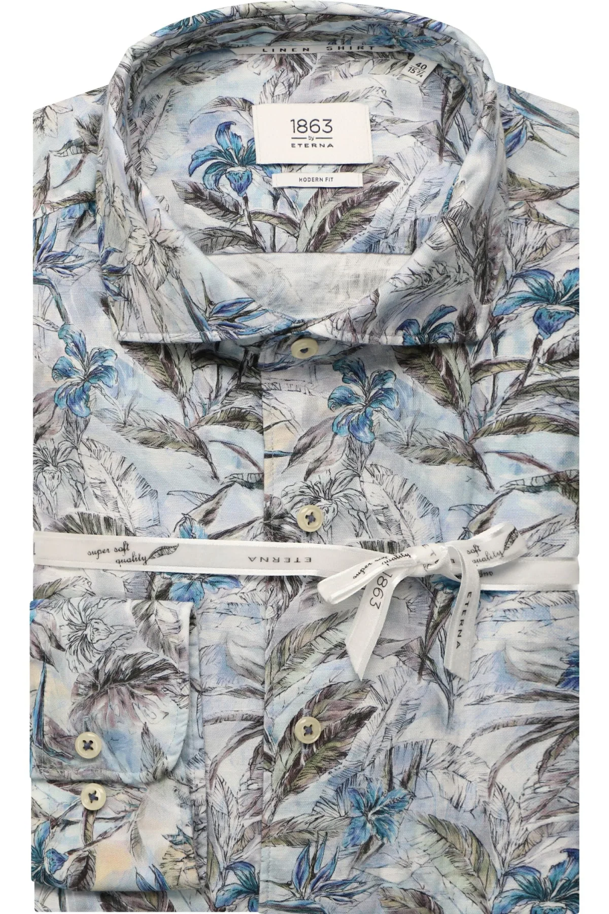 ETERNA 1863 Linnen Overhemd blauw, Bedrukt