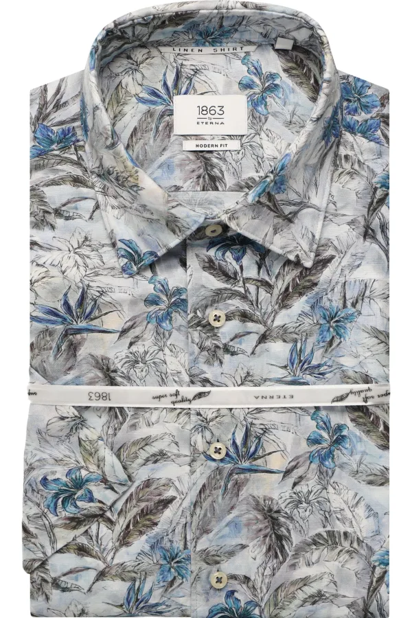 ETERNA 1863 Linnen Overhemd blauw, Bedrukt Prijzen