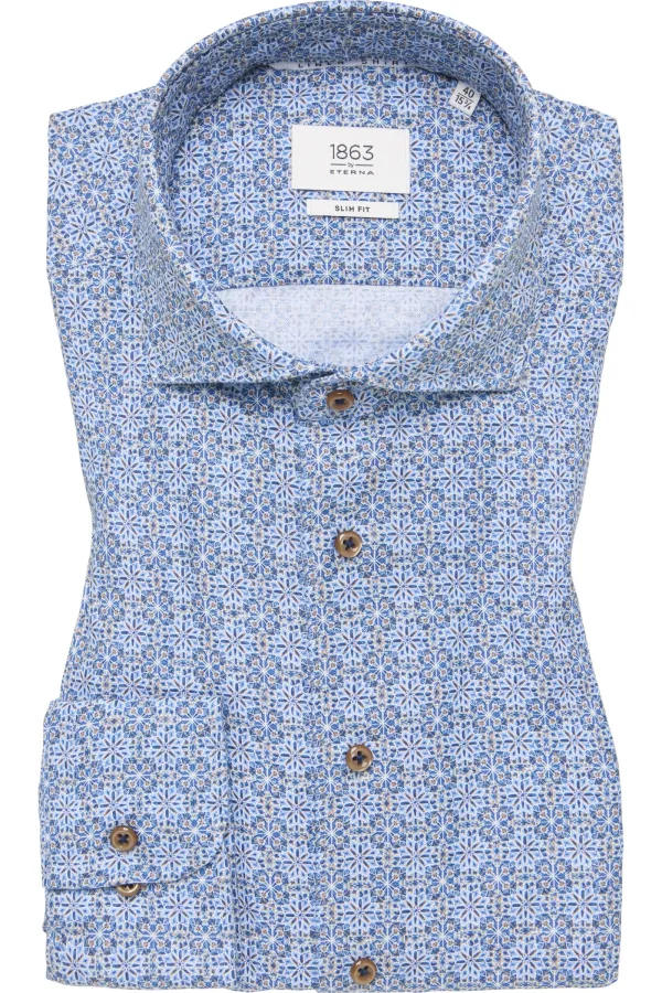 ETERNA 1863 Linnen Overhemd blauw, Bedrukt Prijzen