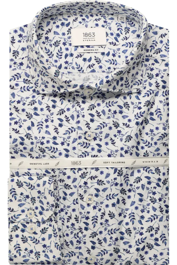 ETERNA 1863 Linnen Overhemd blauw, Bedrukt Prijzen