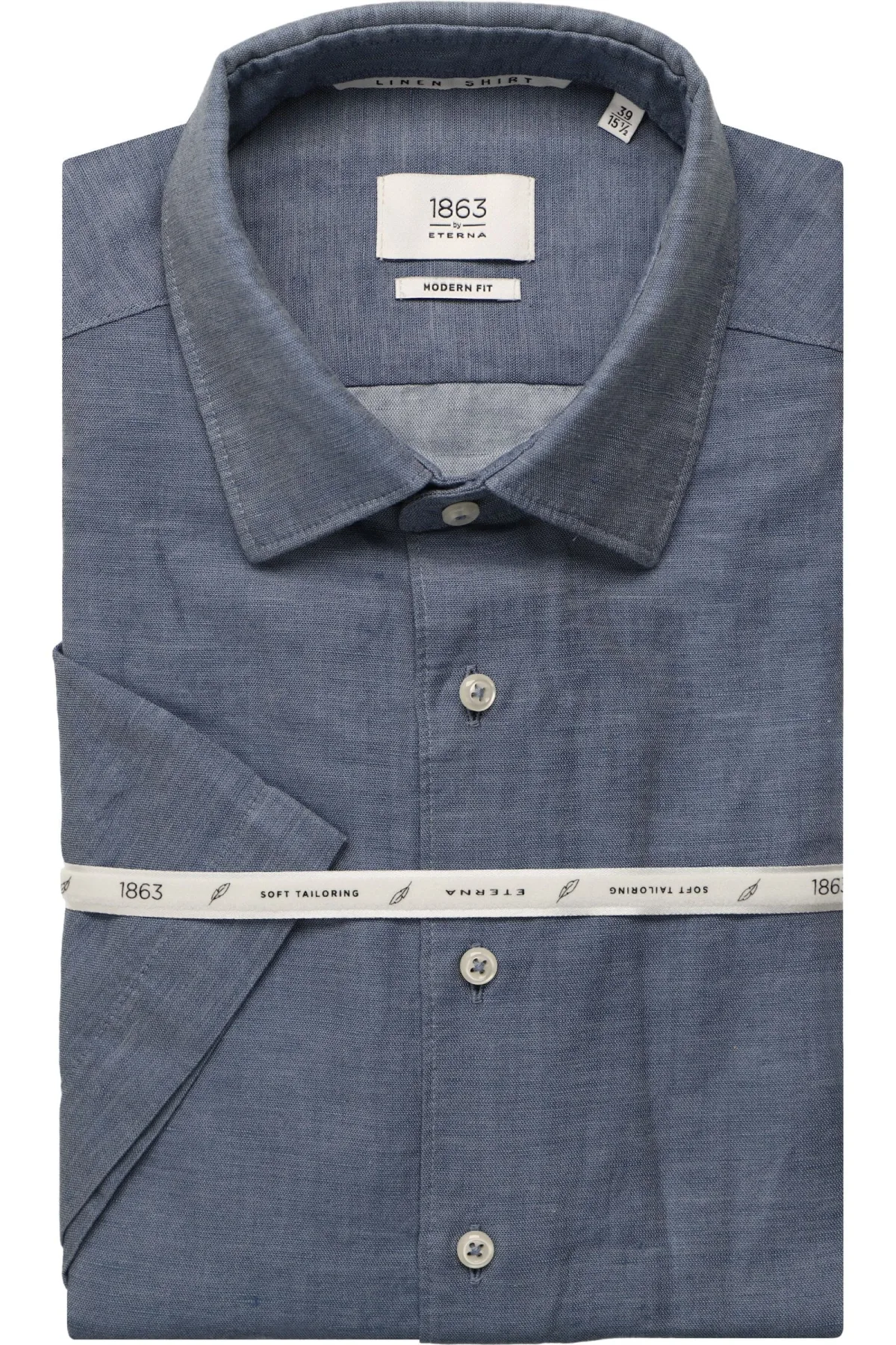 ETERNA 1863 Linnen Overhemd blauw, Effen