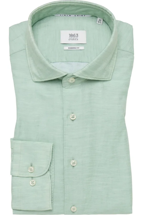 ETERNA 1863 Linnen Overhemd groen, Effen