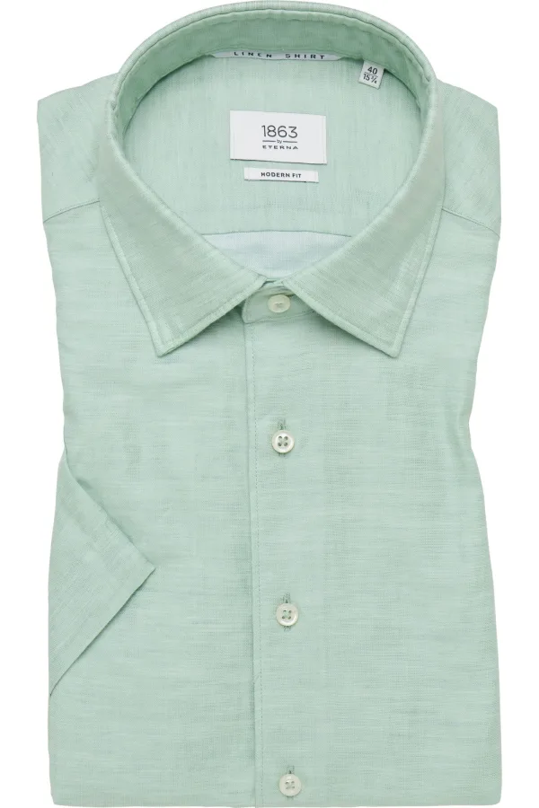 ETERNA 1863 Linnen Overhemd groen, Effen Prijzen