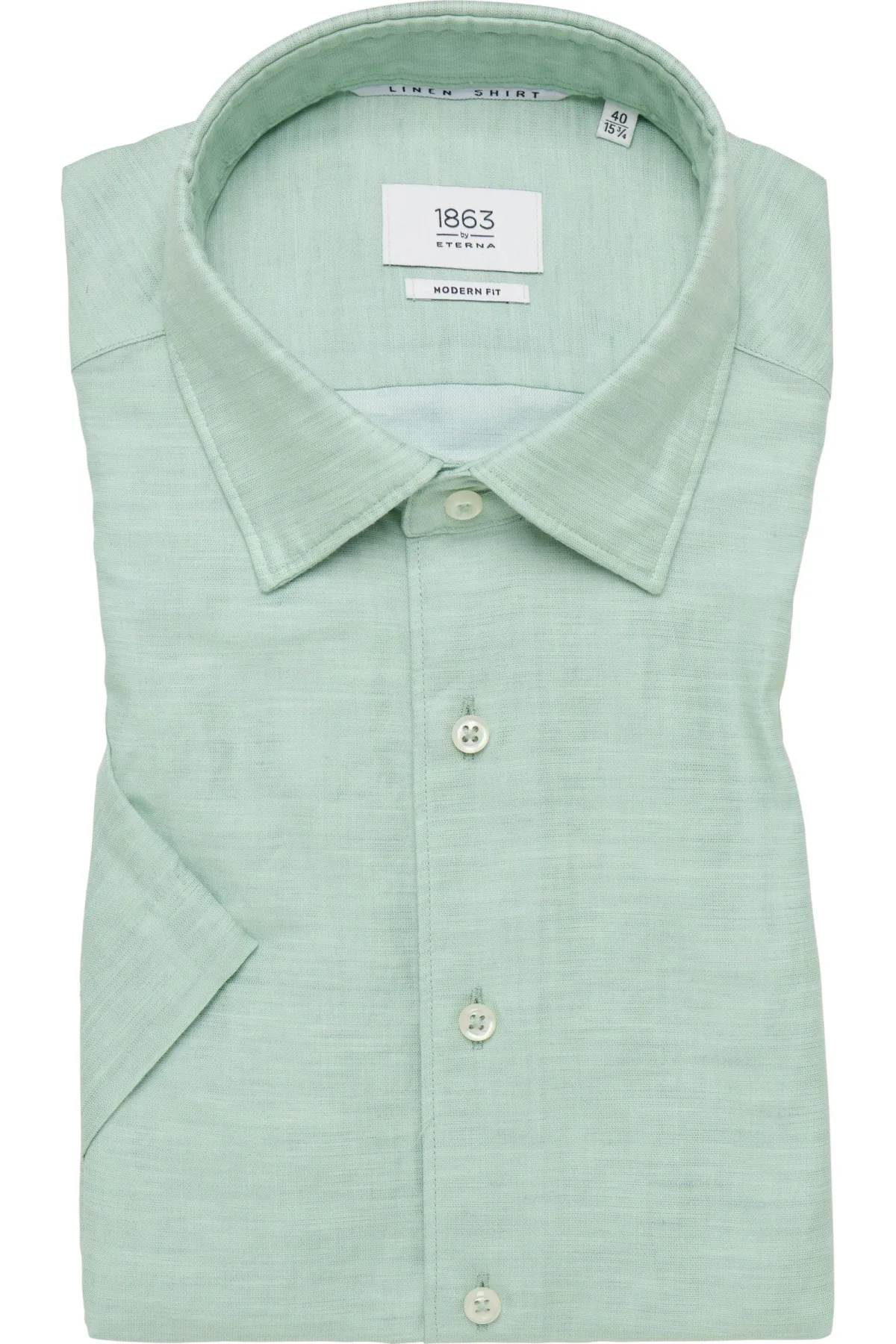 ETERNA 1863 Linnen Overhemd groen, Effen