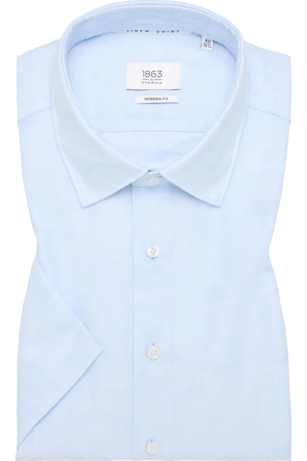ETERNA 1863 Linnen Overhemd hemelsblauw, Effen Prijzen