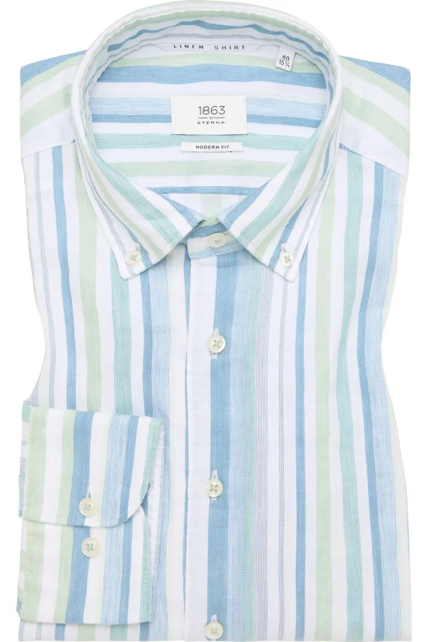 ETERNA 1863 Linnen Overhemd lichtgroen, Gestreept Prijzen