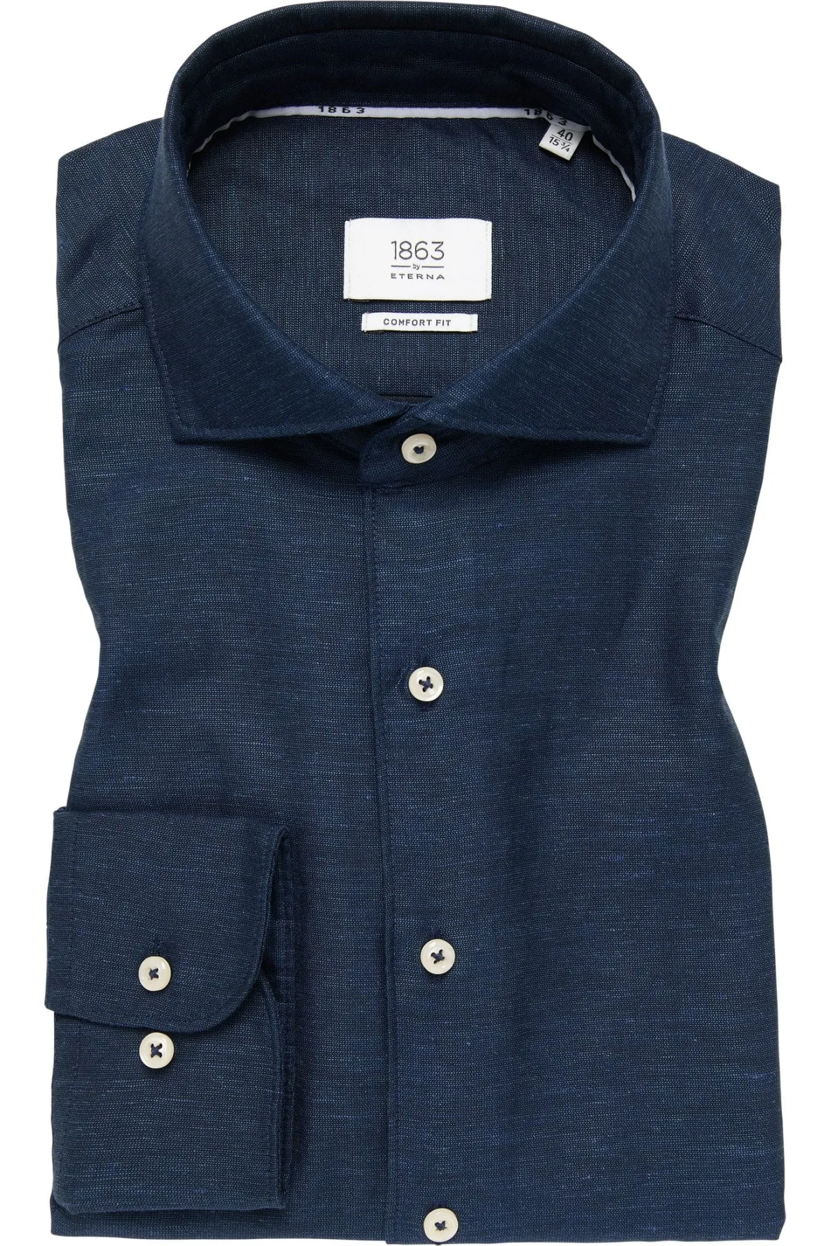 ETERNA 1863 Linnen Overhemd marine, Effen