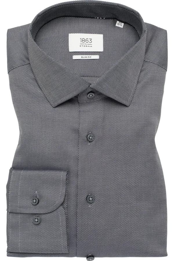 ETERNA 1863 Overhemd antraciet, Gestructureerd