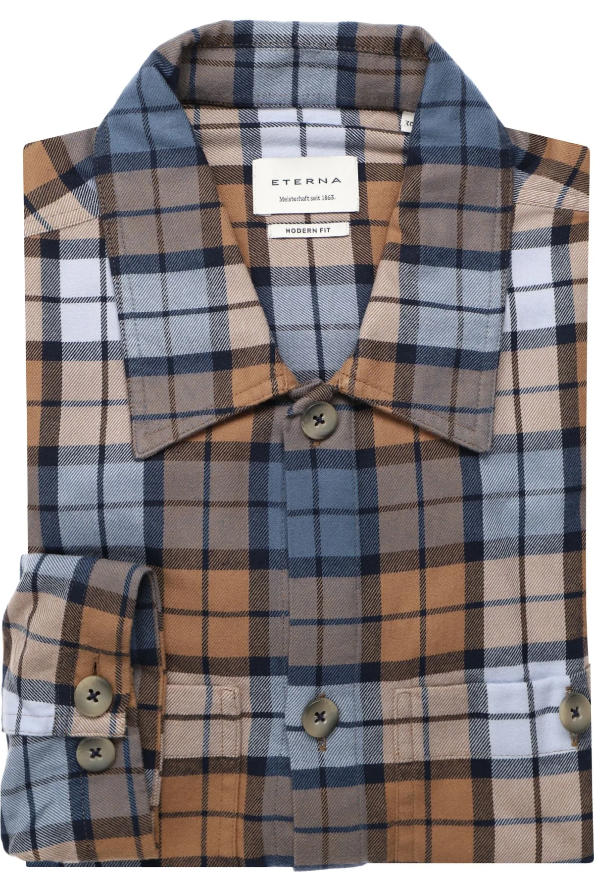 ETERNA Flanellen Overhemd bruin/blauw, Ruit