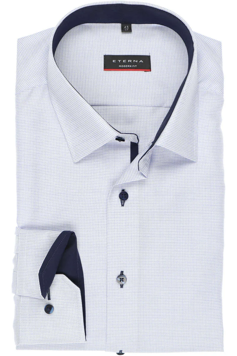 ETERNA Modern Fit Overhemd blauw/wit, Gestructureerd