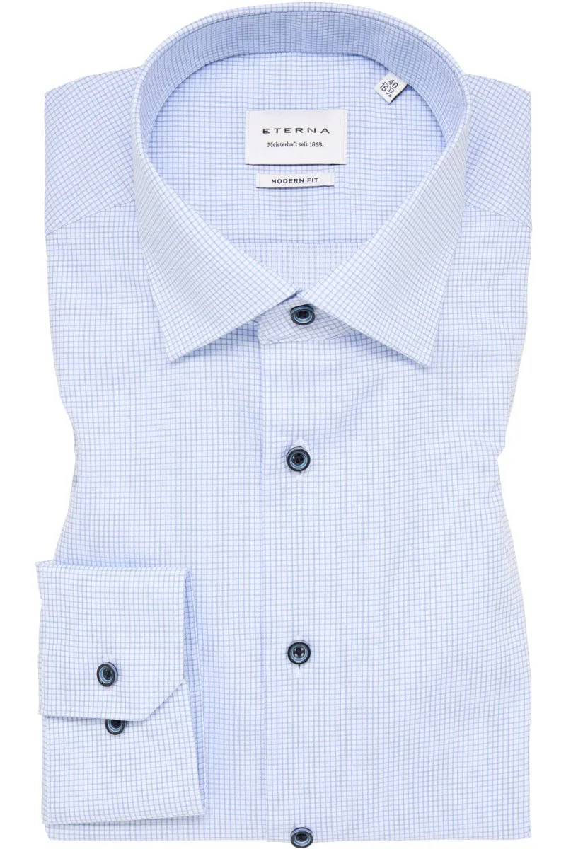 - Bij Overhemden.com kun je ETERNA Overhemd middenblauw Ruit kopen voor slechts €62,95