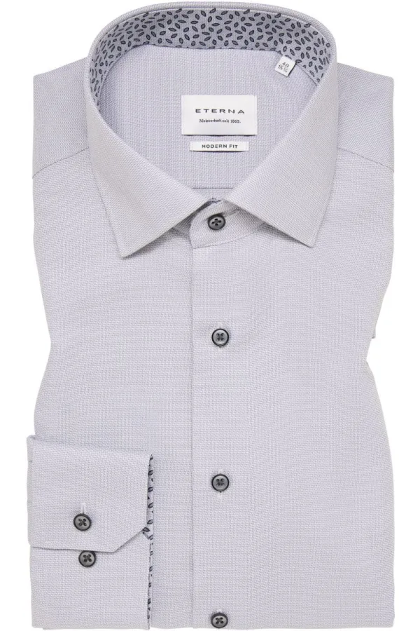 ETERNA Modern Fit Overhemd staalgrijs, Gestructureerd Prijzen