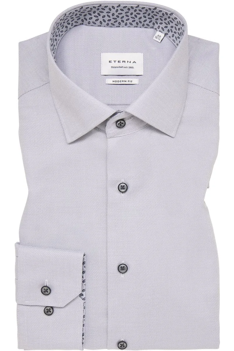 ETERNA Modern Fit Overhemd staalgrijs, Gestructureerd