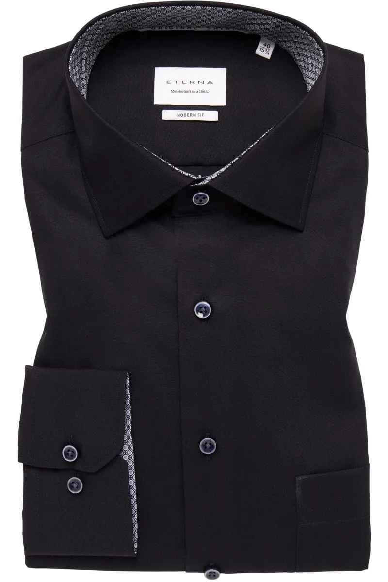 ETERNA Modern Fit Overhemd zwart, Effen