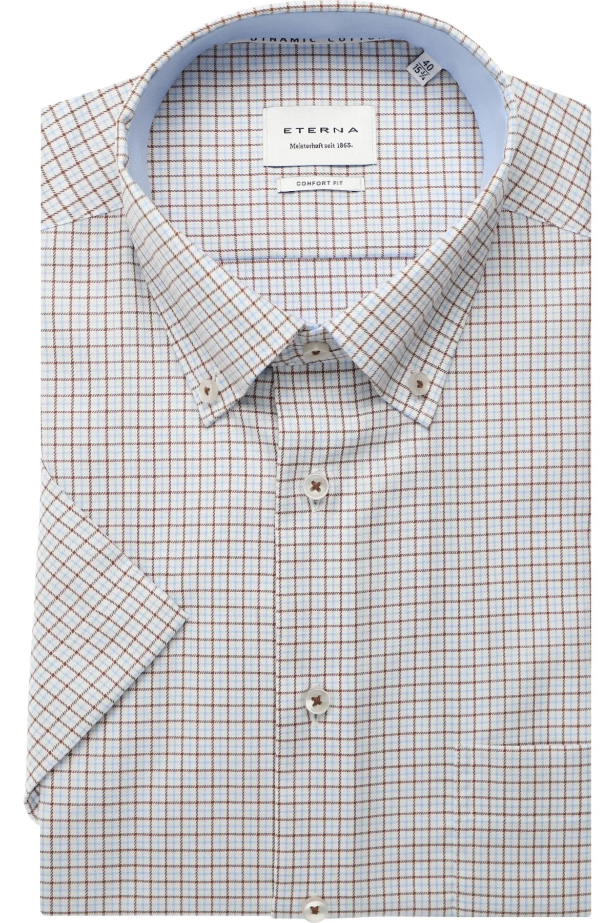 - De laagste prijs van ETERNA comfort fit overhemd korte mouw twill wit met lichtblauw en bruin geruit Strijkvrij Boord werd gevonden op 24 april 2026 17:54.