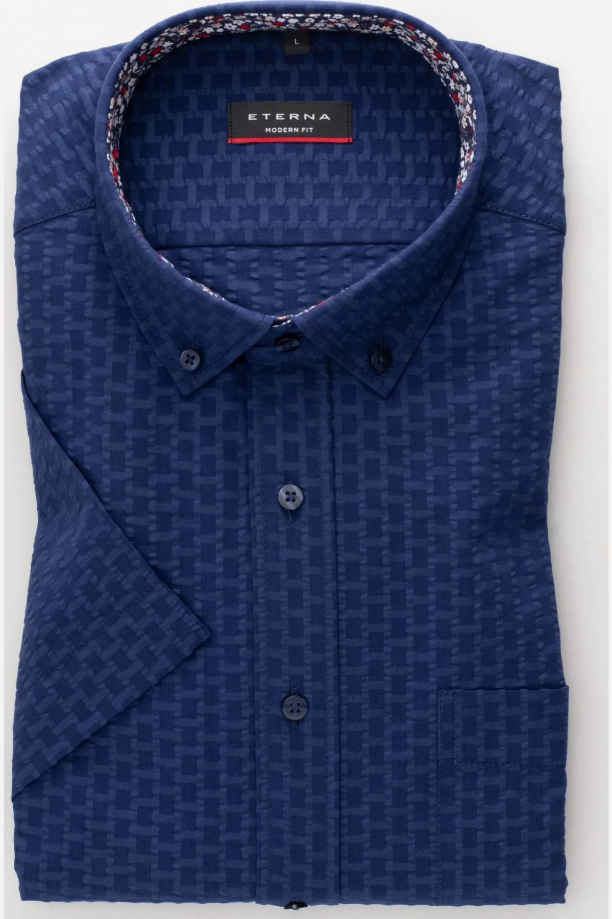Korte mouw, 100% Katoen, Button-Down kraag seersucker, Met borstzak, 40 graden